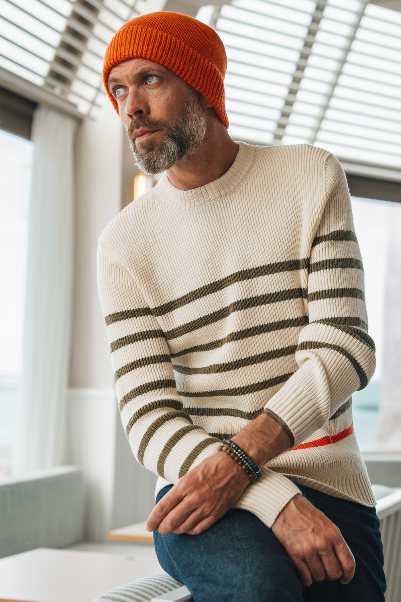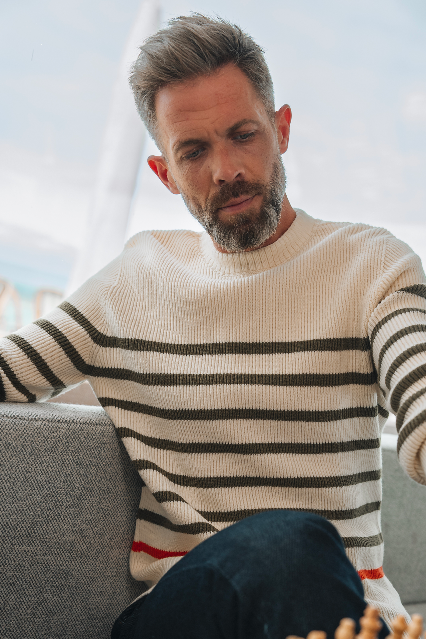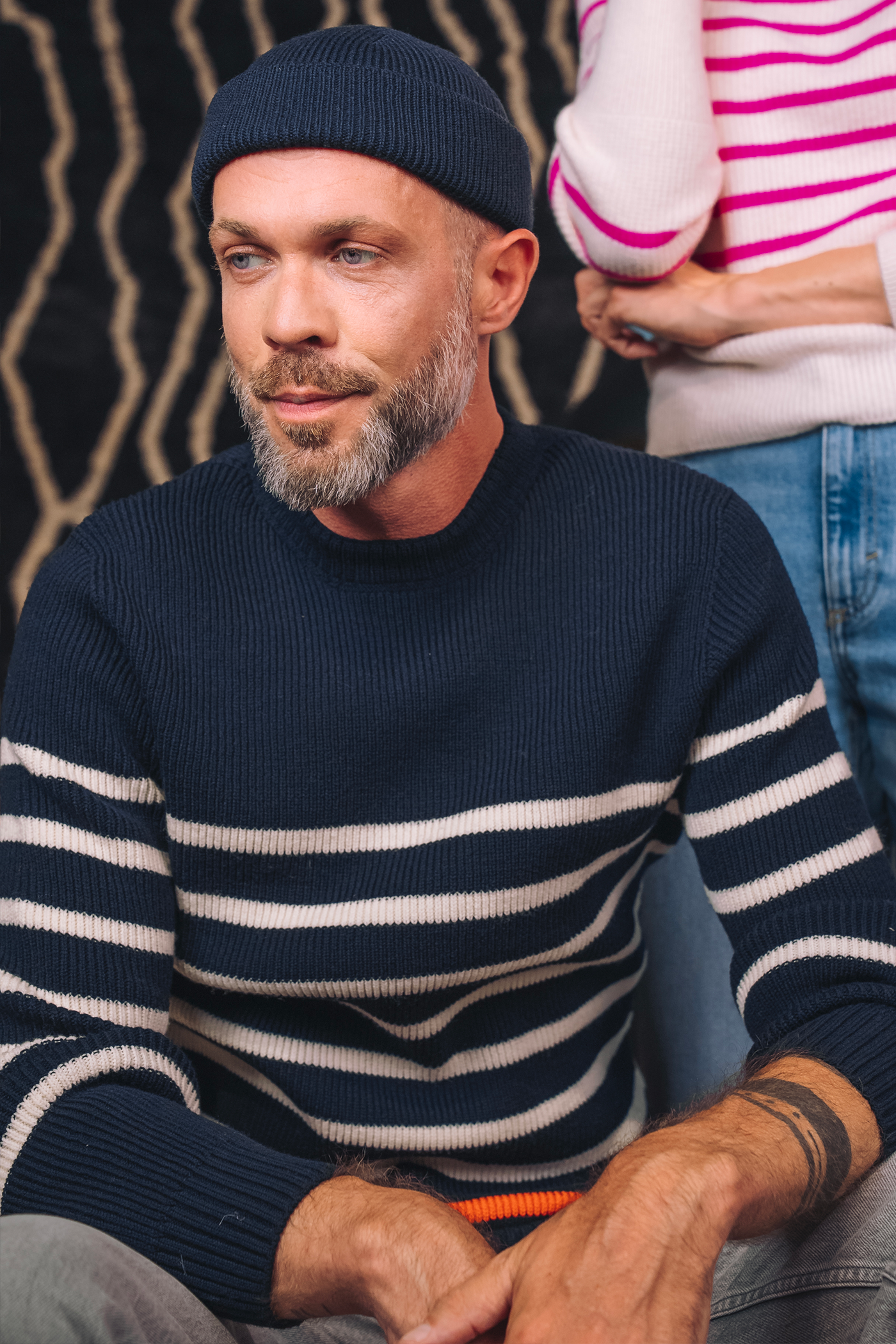 Inspired by sailor sweaters, the Chevrets Striped modernizes the classic with a balanced play of stripes and a perfectly fitted cut. Knitted in ultra-fine merino wool , it guarantees unparalleled comfort while adding a graphic and dynamic touch to your outfits.